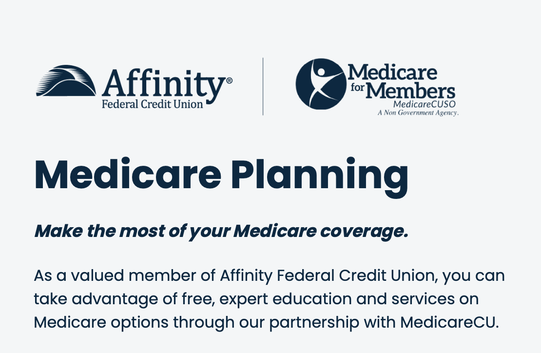 “Medicare coverage can vary significantly based on individual health needs, prescription costs, income level, and preferences for supplemental or Medicare Advantage plans,” Affinity FCU said. “Many individuals find the enrollment process and plan differences confusing. Affinity’s new Medicare Planning Services provides members with access to licensed advisors who offer clear, personalized guidance – so members can confidently evaluate coverage options and make informed decisions.”