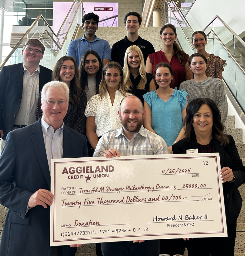 BRYAN-COLLEGE STATION, Texas–Aggieland Credit Union has committed another $25,000 over the next five years to continue its backing of the Texas A&M Strategic Philanthropy Course.