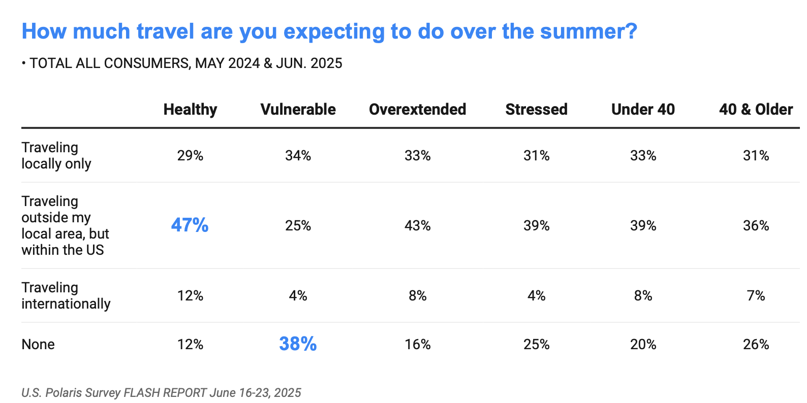 - 28% of consumers made no changes to their summer travel plans, down from 32% a year ago.