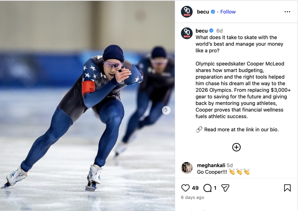 “BECU has a proud history of developing partnerships and celebrating our members as they strive to attain their goals in life,” Jason Rudman, BECU’s executive vice president and chief member and digital experience officer, said in a statement. “We are excited to celebrate Cooper, one of Washington’s own and a BECU member, as he looks to represent the U.S. at the 2026 Winter Olympics.”