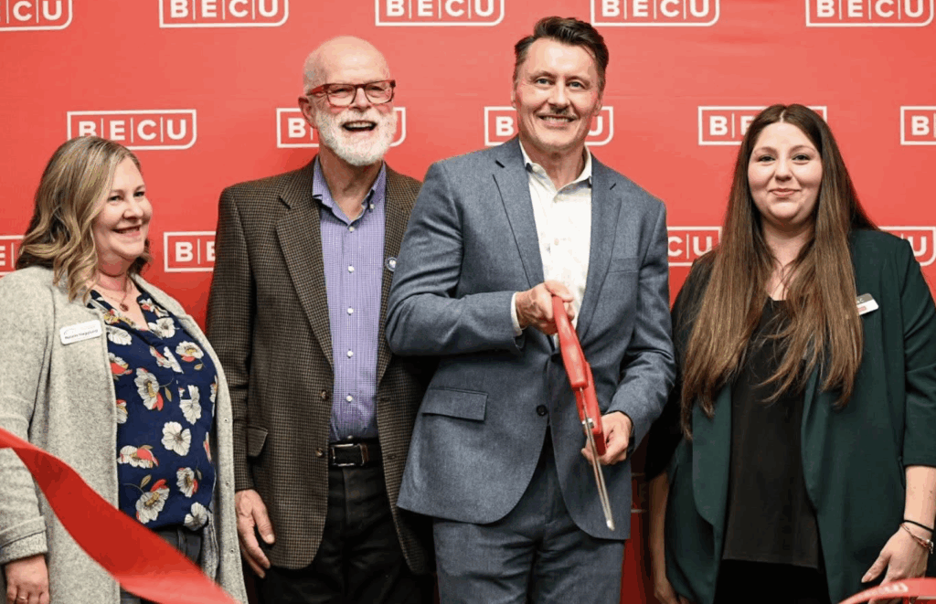 A ribbon cutting ceremony was led by BECU Chief Member and Experience Officer Jason Rudman, Stanwood Branch Manager Angela Cruz, Stanwood Mayor Sid Roberts and community partners.