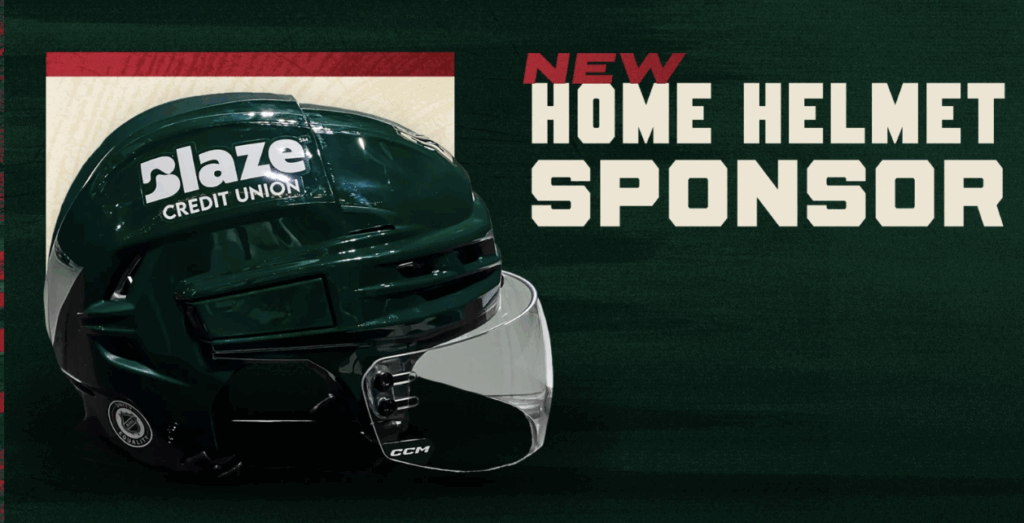 The Blaze Credit Union logo will appear exclusively on the Wild’s home helmets starting this season. The CU is already the official credit union of the Minnesota Wild.