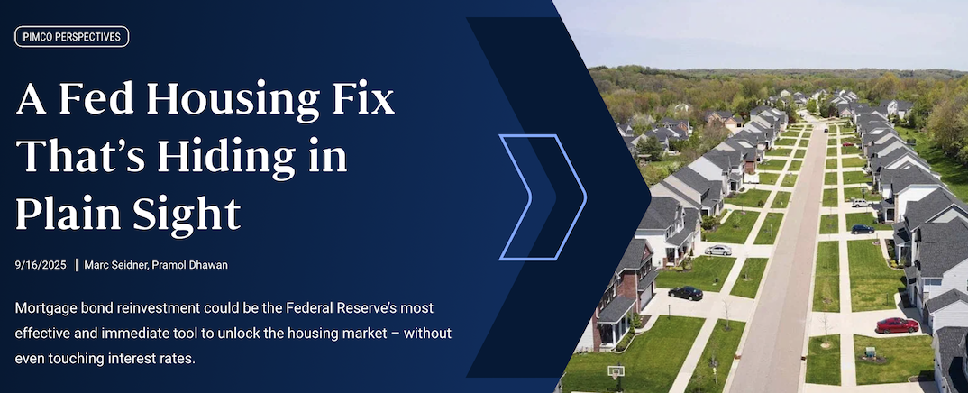 “Reinvesting the proceeds of principal and interest payments by mortgage borrowers behind MBS on its balance sheet could do as much, if not more, than rate cuts to lower mortgage rates, wrote Marc Seidner, chief investment officer of non-traditional strategies, and Pramol Dhawan, portfolio manager at PIMCO,” Reuters stated.