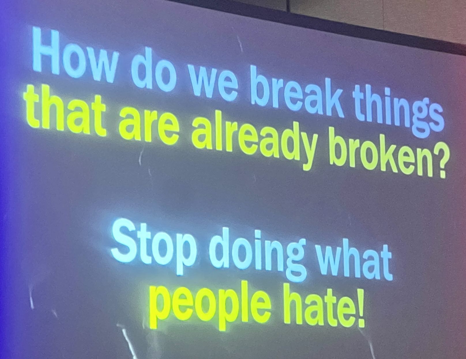 “Forcing functions are your friends. Is the thing we are defending the thing people actually want?” he continued. “You can ask this question and then you have to be open to addressing the answers. When you do, you will finally be able to break the thing that’s broken.”