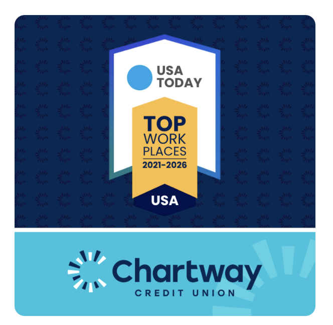 In addition to the 2026 Top Workplaces USA award, Chartway received several Top Workplaces awards in 2025 including the Inside Business Top Workplaces Award for Hampton Roads for the seventh consecutive year and a sixth consecutive Salt Lake Tribune Top Workplaces Award in Utah, and a Top Workplaces Industry Award for Financial Services for the fifth time. The credit union also earned Top Workplaces Cultural Excellence Awards in the fall and spring, recognizing excellence in innovation and appreciation.