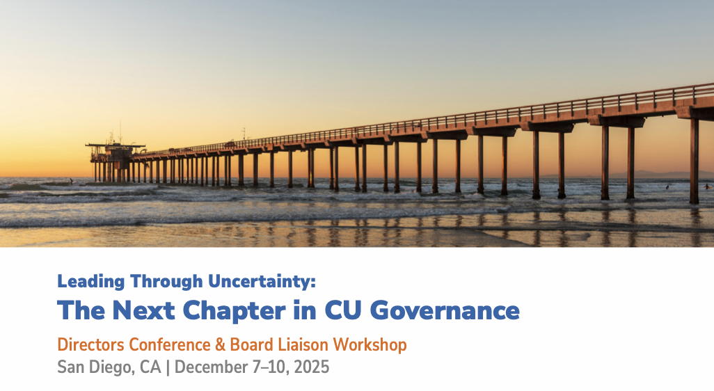 MADISON, Wis.–CUES will host its Directors Conference and Board Liaison Workshop titled “Leading Through Uncertainty: The Next Chapter in CU Governance” from Dec. 7-10 in San Diego.