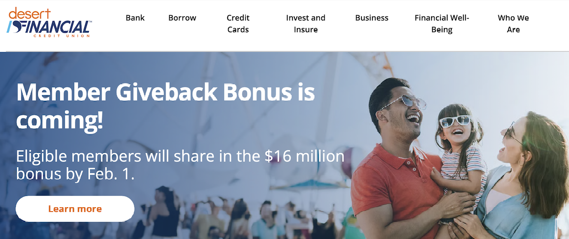 PHOENIX—Desert Financial Credit Union said its Member Giveback Bonus program will reward qualified members with a total of $16 million later this month.