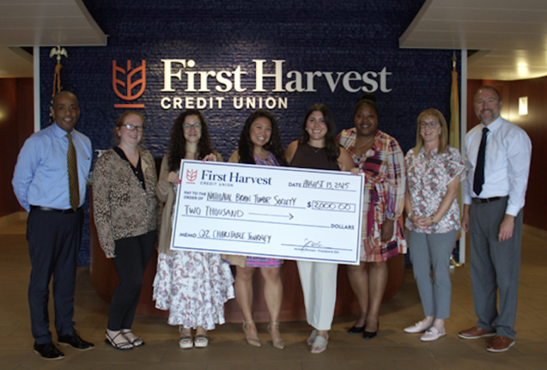 DEPTFORD, N.J.–First Harvest Credit Union’s Charitable Journey Program has donated $2,000 to the National Brain Tumor Society (NBTS), which funds brain tumor research grants and awards for researchers and institutions to support the discovery of effective treatment options and, ultimately, a cure while also advocating for patients.