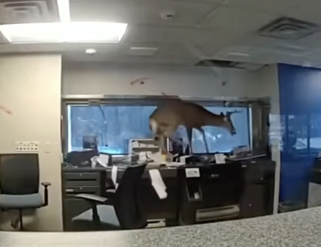 Separately, in Suffolk County, N.Y., police responding to a burglar alarm at a local bank discovered a fully grown male deer trapped inside and trashing the branch, with the whole thing caught on video.