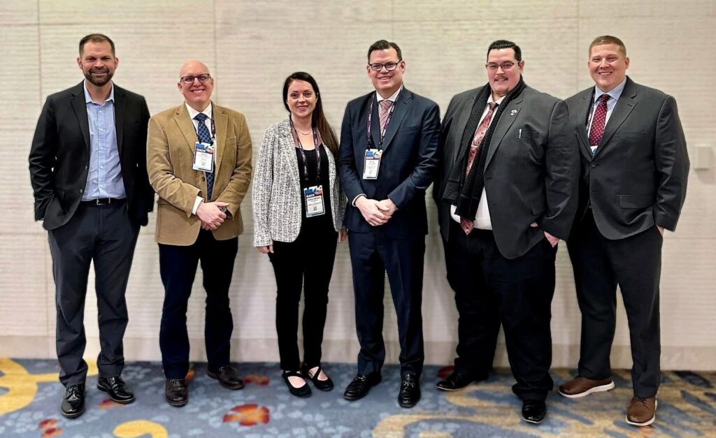 Representatives of small CUs meeting in Washington are, from left: Micheal Wolsten, CEO of Michael Wolsten Consulting; Doug Wadsworth, president of Tri Communities FCU and ESCUD; Sarah McNeil, CEO of United Trades FCU; Kyle Hauptman, Chairman of NCUA; Josh Urbick, CEO of IBEW 26 FCU, and Andrew Crosby, CEO of Cheney FCU.