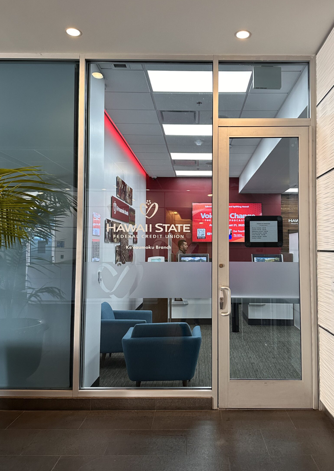 The 1,465-square-foot Keʻeaumoku Branch offers a full suite of Hawaii State FCU products and services in a modern, technology-driven space. Features include two Interactive Teller Machines (ITMs) for fast and flexible self-service banking, live teller assistance, digital displays, a flexible office designed for transactions and one-on-one consultations, and a conference room that provides space for more in-depth financial planning discussions.