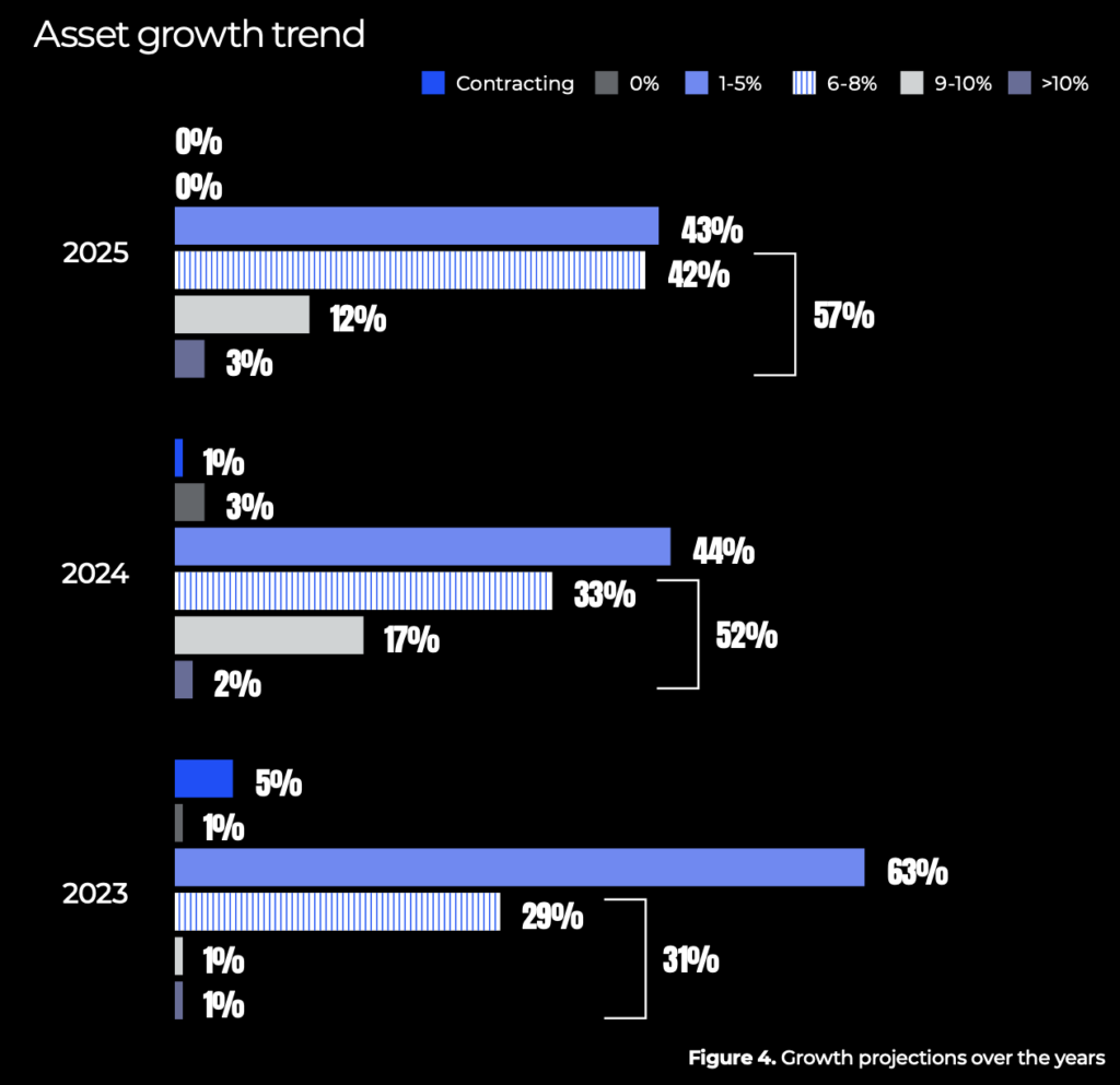 • 67% expect asset growth of 5%+ in the next 12 months.