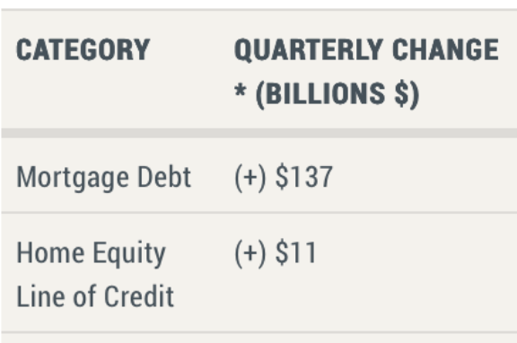 - Home equity line of credit (HELOC) balances increased by $11 billion to $422 billion