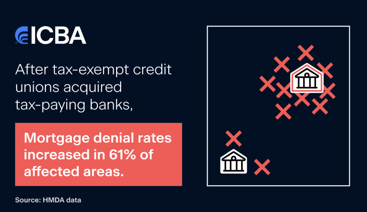 “The damage to communities highlights the inequities and perverse incentives built into federal policies that prop up this taxpayer-subsidized industry,” the ICBA stated. “Lawmakers granted credit unions a full federal tax exemption on the condition they serve defined fields of membership, but years of relaxed policies and mission creep have created conditions that are at odds with the public’s best interest.”