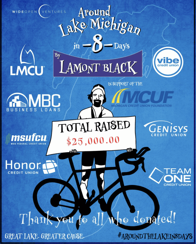 Added Black shared, “Riding around Lake Michigan in eight days was an incredible personal challenge. But it was also an opportunity to bring attention to the important work of credit unions. I’m honored to have partnered with MCUF to support financial well-being and to know that every mile contributed to making a difference in people’s lives.”