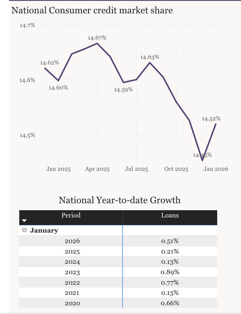 WASHINGTON–Credit union loans outstanding increased 0.51% in January 2026 compared to a 0.04% increase in the previous month and a 0.21% increase in January 2025, according to America’s Credit Unions latest Monthly Credit Union Estimates (MCUEs).