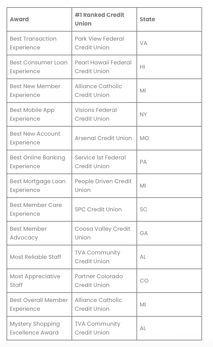 The Best Overall Member Experience Award recognizes excellence across the most critical moments in the member journey. The award combines consumer loan, new member and transaction experiences into a single comprehensive evaluation.