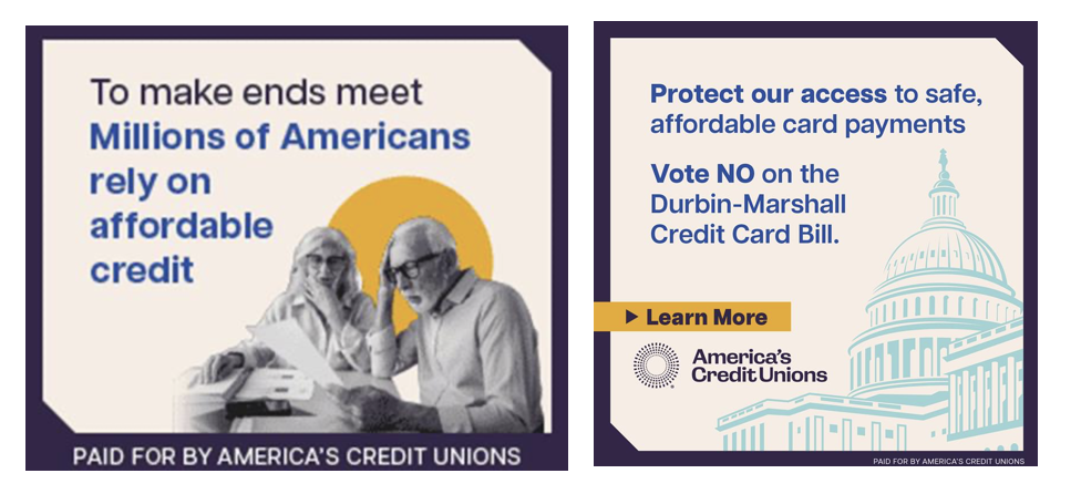 “The Durbin-Marshall credit card mandates are a solution in search of a problem that will ultimately make credit less accessible and everyday purchases less secure for middle class families,” ACU President and CEO Scott Simpson said in a statement. “Credit unions are hearing directly from their consumer members who are concerned about fraud, rising costs, and maintaining access to safe and affordable credit. This campaign ensures that consumers and policymakers alike understand what is at stake.”
