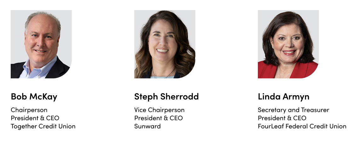 The board elected new board officers: Chairperson Bob McKay; Vice Chairperson Steph Sherrodd, president and CEO of Sunward Federal Credit Union; and Linda Armyn, president and CEO of FourLeaf Federal Credit Union, as secretary and treasurer.