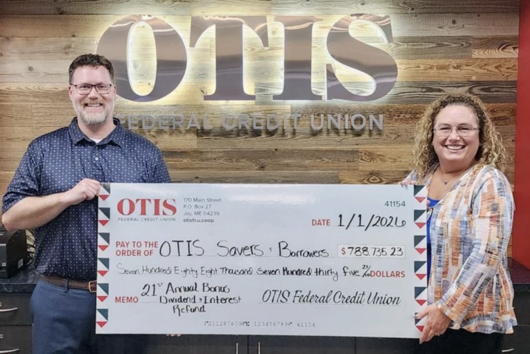 JAY, Maine–OTIS Federal Credit Union has paid out more than three-quarters of a million dollars as part of its annual bonus dividend and interest refund program it calls the “OTIS Advantage.”