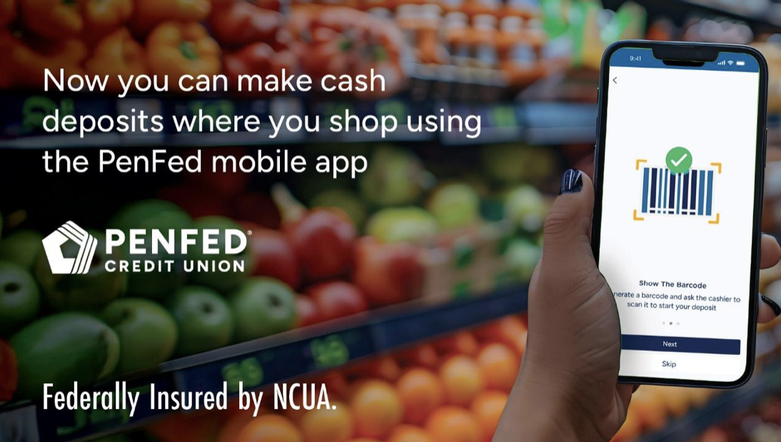 The credit unions said members with checking accounts can use the PenFed Mobile App to generate a one-time use barcode, show it to the cashier to scan and complete a cash deposit transaction.