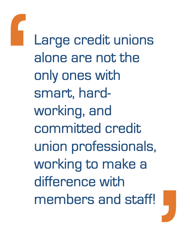 “Well said, Joshua. Large credit unions alone are not the only ones with smart, hard-working, and committed credit union professionals, working to make a difference with members and staff!