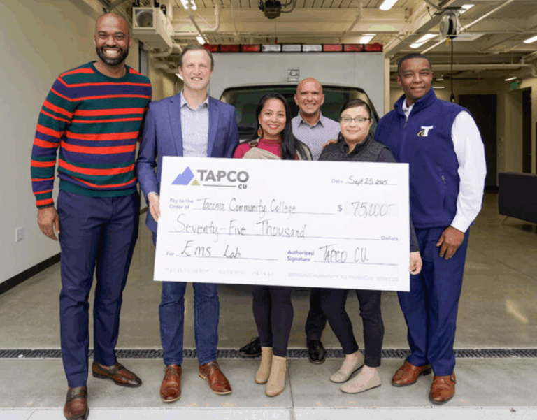 TACOMA, Wash.–The ambulance bay of Tacoma Community College’s new Emergency Medical Services (EMS) lab will be named after TAPCO Credit Union following a donation of $75,000 to support the newly constructed lab.