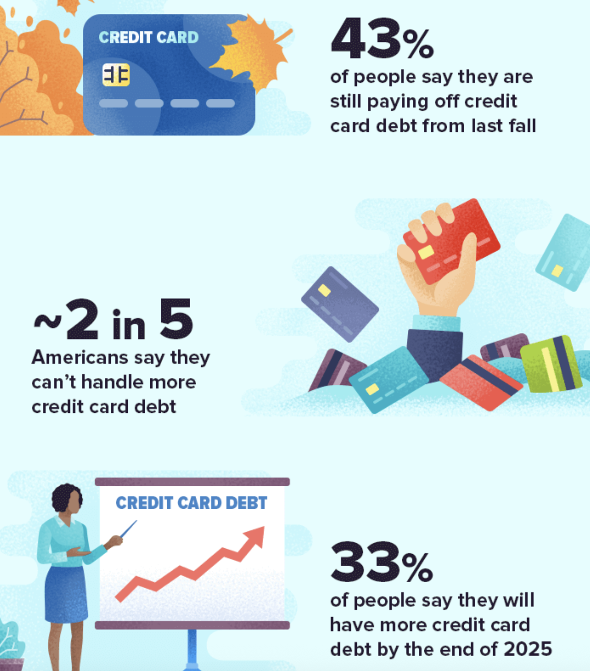 - 43% of respondents say they are still paying off credit card debt from last fall.
