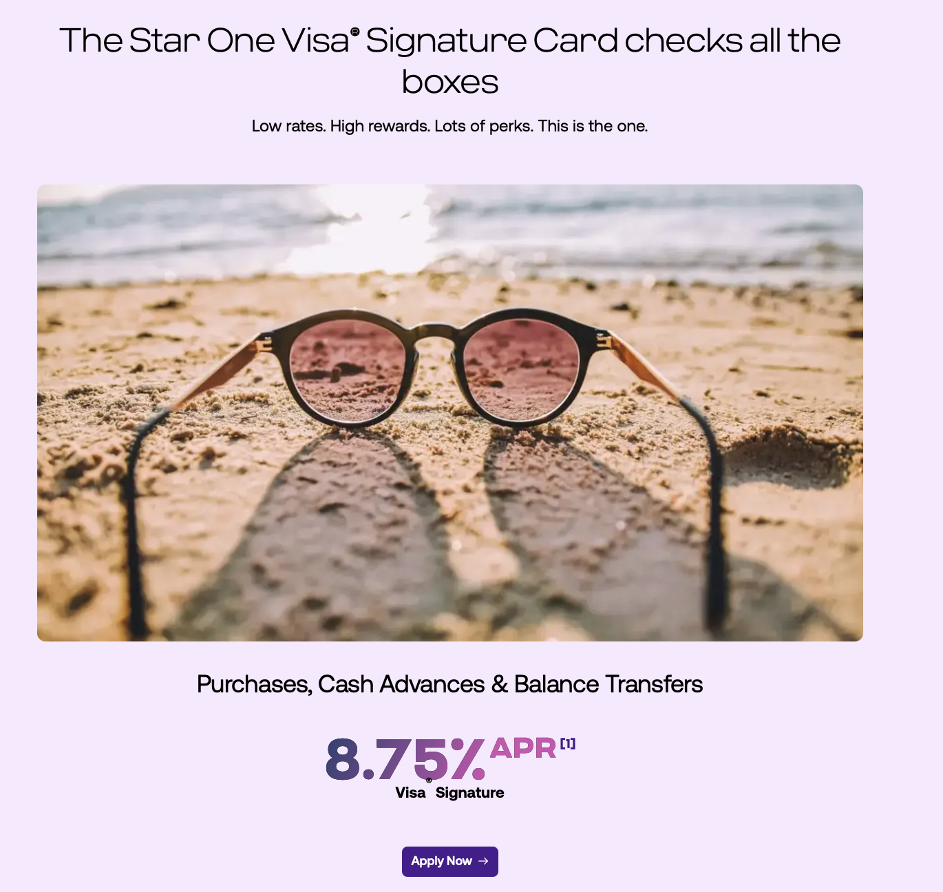 The $9.34-billion Star One CU in Sunnyvale, Calif. was offering several Visa credit cards with ongoing APRs as low as 7.75%–8.75% on purchases and balance transfers for highly qualified applicants.